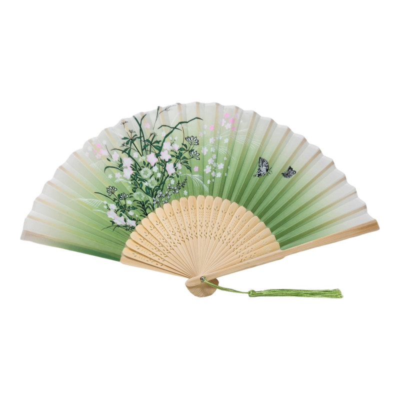 Handfächer Holz mit Blütenbaum-Muster Grün ( 10 St. / packung )