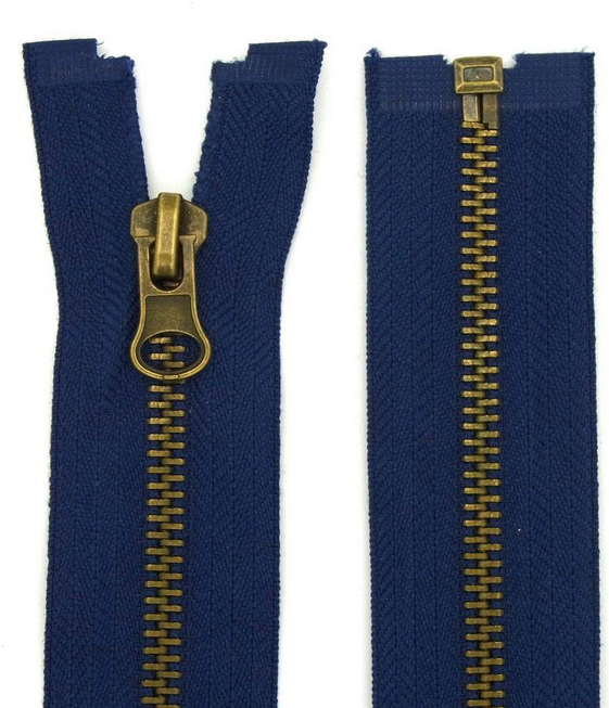 Der Standard-Schieber des Zippers kann je nach Verfügbarkeit einen kantigen oder runden Anhänger/Griff haben. Die Farbe des Schiebers kommt in Messing, Altgold oder Silber.