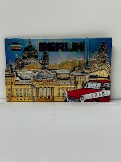 Weißblechen Kühlschrankmagnet 6x10cm mit Berlin-Motiv.